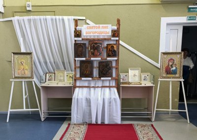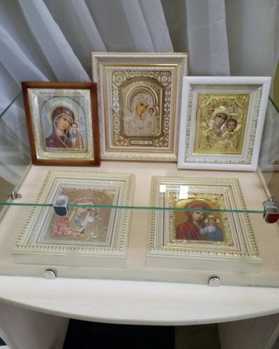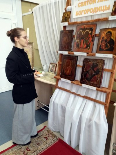 На выставке были представлены иконы 19 века из фондов музея, а также современные иконы Божьей матери.